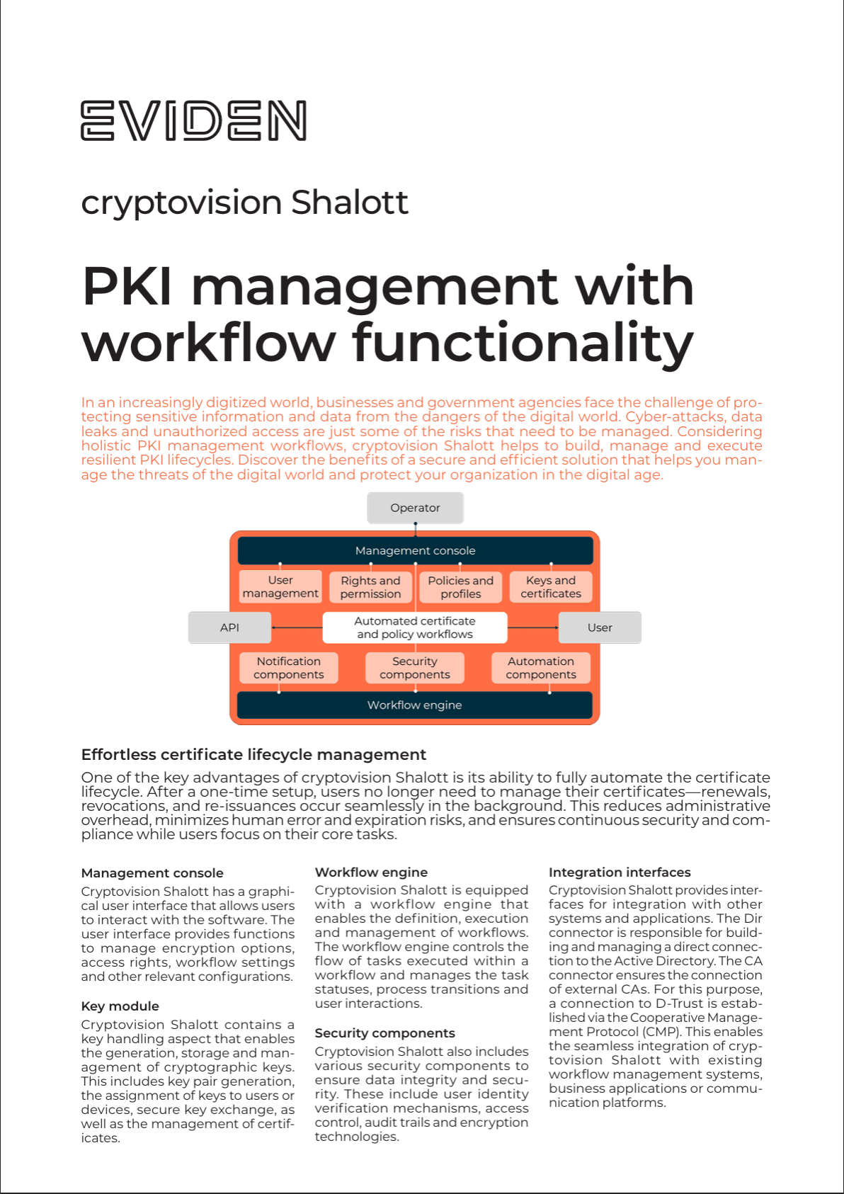 Das PKI-Management-System Shalott ist eine Lösung für die zentrale Verwaltung von Zertifikaten und Schlüsseln. Es besteht aus den folgenden Modulen: